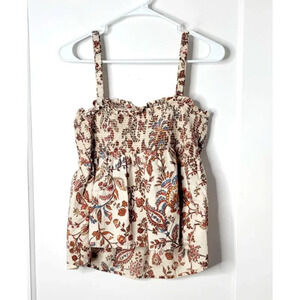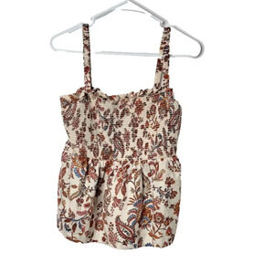 Old Navy Tank Blouse Large Smocked Floral Stretch Boho Ruffle Femme Cottagecore