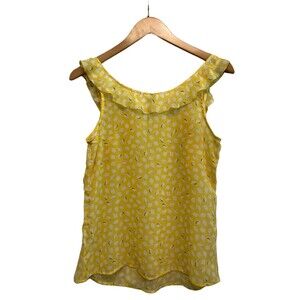 Old Navy Tank Top Ruffle Yellow Floral Scoop Neck Sleeveless Lightweight Flowy S