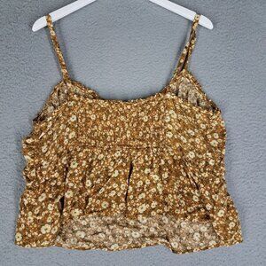 Old Navy Tank Top Women's 2X Floral Cottagecore Crop Brown Cream Summer Feminine