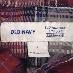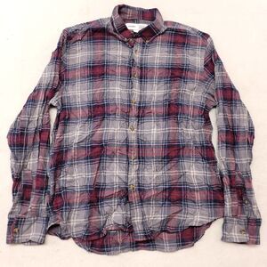 Old Navy Tartan Flannel Button Up Shirt Mens Size Large L Gray Blue Red