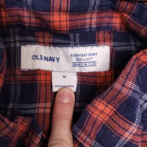 Old Navy Tartan Flannel Casual Button Up Shirt Mens Size Medium M Blue Orange