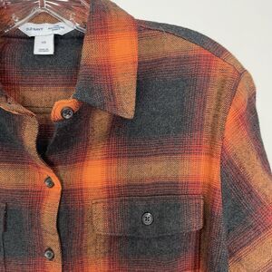 Old Navy Taylor Swift Evermore Boyfriend Shirt XS *Cropped* Orange Black Plaid O
