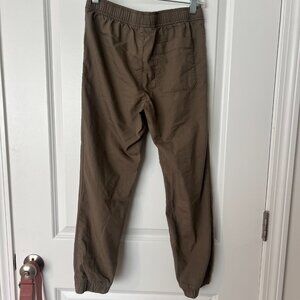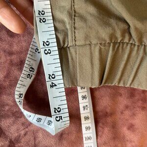 Functional zipper pockets and functional drawstring. Pocket on backside. Great elastic band and soft elastic jogger for comfort. These are really nice quality! See photos for measurements and condition.
