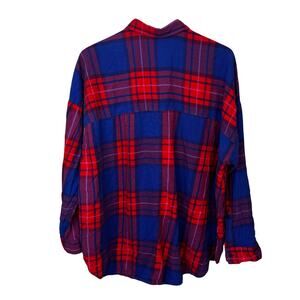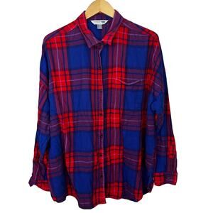 Old Navy The Boyfriend Shirt Women's XXL Blue Red Plaid Button Down Long Sleeve