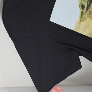 Black t-shirt featuring a Baby Yoda graphic on the front.