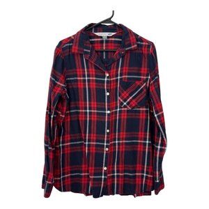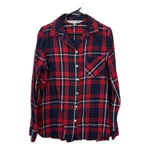 Old Navy The Classic Shirt Womens L Red & Navy Plaid Button-Up Long-Sleeve Shirt