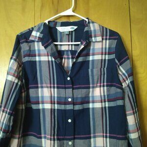 Old Navy The Classic Shirt Women's Large Plaid Button Front Long Sleeve Shirt