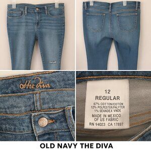 Old Navy The Diva women’s jeans in size 12 Regular. Blue wash denim with a mid-rise straight leg fit. Comfortable cotton blend with stretch, distressed at the knee and back pocket. Great casual essential!