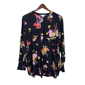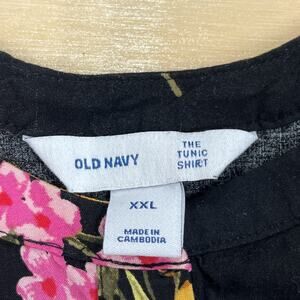 Old Navy The Tunic Shirt Black Multicolor Floral Popover Blouse Size XXL
