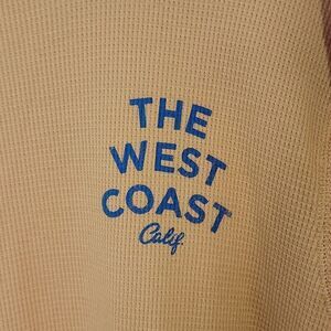 Stylish mustard long sleeve shirt. Features 'The West Coast' graphic. Perfect for casual wear.