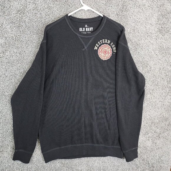 Old Navy Thermal Sweater Mens XL Black Long Sleeve Crew Neck Patched Casual