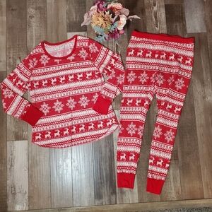 Old Navy Matching Red and White Christmas Holiday Thermal PJs Pajamas EUC