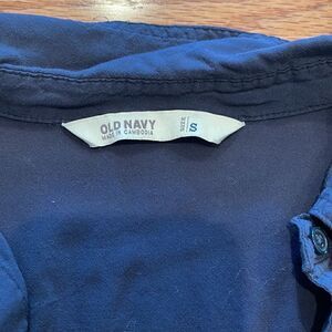 Old Navy Tie Front Button Down Blouse Grey Blue Small