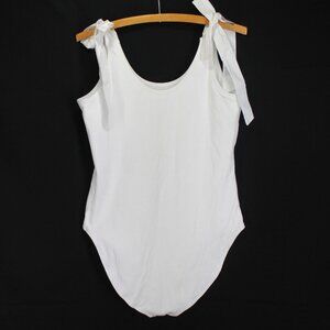 Old Navy Tie Shoulder Bodysuit Womens Sz L White Rib Knit Sleeveless Sccop Neck