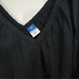 Old Navy Tie Strap Midi Swing Dress Black Crepe with Pockets Lined 2X