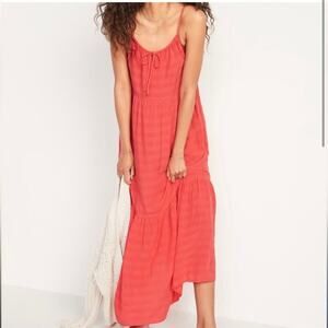 Old Navy Tiered Flowy Sundress Pink Coral Small Beachy Boho Tropical Vacation