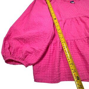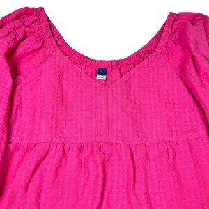 Old Navy Tiered Flowy Top Sz.XL Hot Pink Seersucker V-Neck Coquette Dopamine