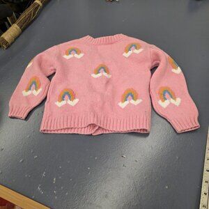 Old Navy Toddler 3T Pink Knit Cardigan Sweater Rainbow Pattern Button Up