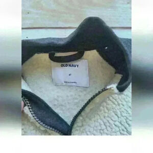 Old Navy Toddler Boys Zip Up Fleece Sherpa Sweater Jacket Grey Beige Size 4T