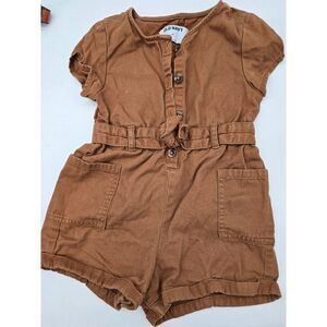 Old Navy Toddler Girls Short Sleeve Romper Belted Button Front Brown Size 2T
