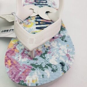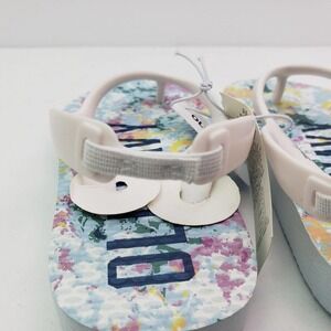 Old Navy Toddler Girls Size 7 White Blue Floral Slip On Flip Flop Sandals