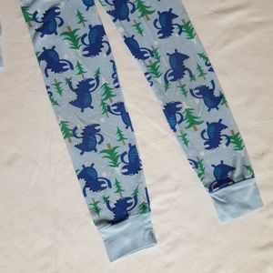 Set includes graphic sleep shirt and patterned sleep pants. Sleep shirt has rib-knit crew neck, long sleeves, and "Dinosaur Snowball Fight" graphic across front. Sleep pants have elasticized waist, rib-knit cuffs, and coordinating pattern. Soft, medium-weight rib-knit cotton.