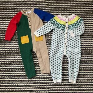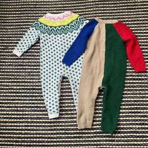 🌿Old Navy Toddler One Piece Snap Knit Fair Isle Color Block Romper 18/24M
