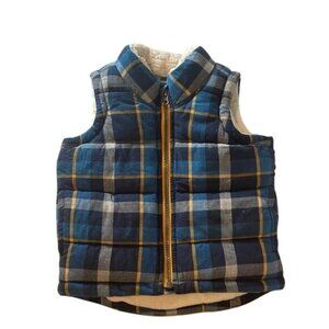 Old Navy Toddler Plaid Puffer Vest With Sherpa Lining Blue Yellow Size Boy 12M