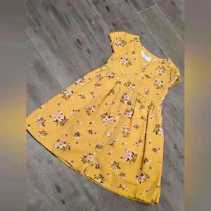 Old Navy Toddler Yellow Floral Button Up Dress Size 5T In Excellent Condition