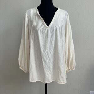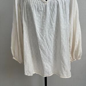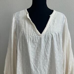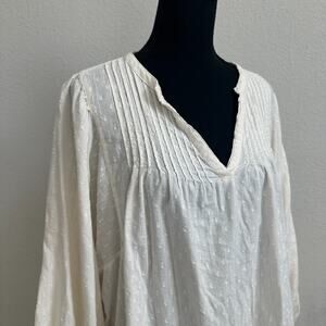 Old Navy Top 2X Plus Blouse Cottagecore Peasant Cream Swiss Dot Casual Pintuck
