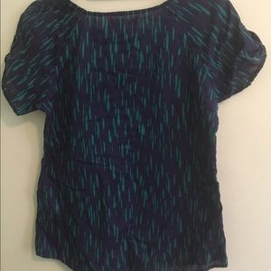 Old Navy button-short sleeved top. Navy with aqua accent spots. Size small.