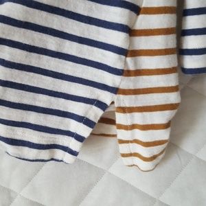3/4 sleeves with pocket. Front navy back light brown. Small slits on sides. Beautiful top says xs but will fit a small as well