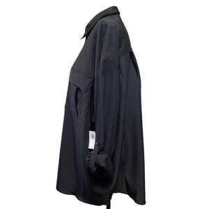 Old Navy Top Long Roll Tab Sleeve Womens 2XL Button Up Double Pockets Black XXL