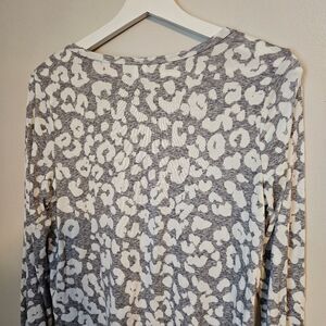 Old Navy Top Long Sleeve Gray White Leopard Print Business Casual Neutral Animal