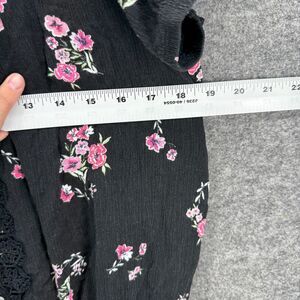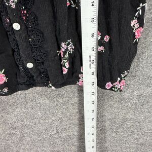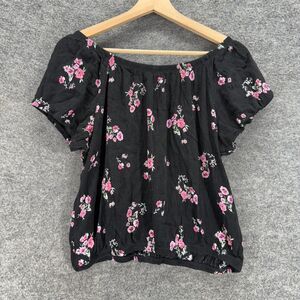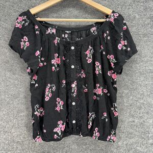 Old Navy Top Women 2XL Black Floral Button Up Short Sleeve Rayon Round Neck