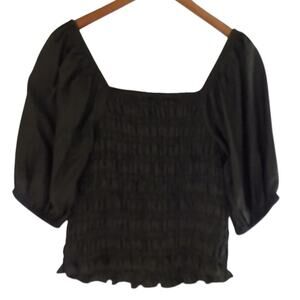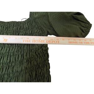 Old Navy Top Women Medium Olive Green Milkmaid Coquette Smocking Festival
