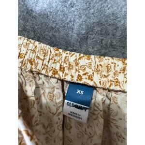 Old Navy Top Women XS Brown Floral Stretch Squareneck Relax Boho tie Shoulder