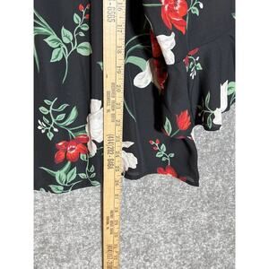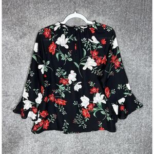 Old Navy Top Womens Size Large Black Floral Swing Bell Sleeve Semi Sheer Ruffle