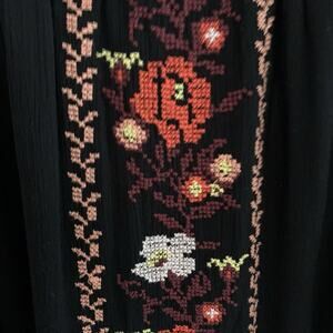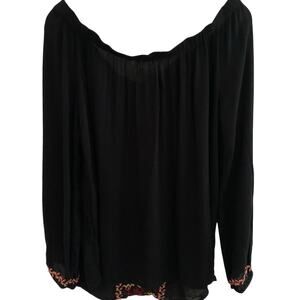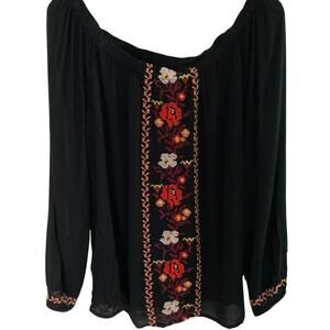 Old Navy Top Women's Size Small Black Embroidered Floral Peasant Blouse