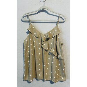 Old Navy Top Womens XL Tan White Polka Dot Ruffle Wrap Effect Tank Cami Beachy