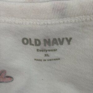 Old Navy Top XL White Red Hearts V-Neck Short Sleeve T-Shirt Cotton Casual