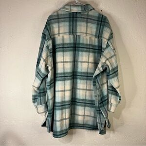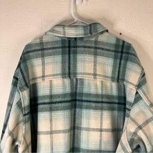 In excellent used condition no rips, tears or stains. Shacket, shirt-jacket, overshirt. Whatever you call it, this classic style has got you covered for transitional autumn temps. Spread collar, seamed back yoke, long sleeves with snap cuffs, utility flap patch pockets at chest, on seam welt pockets, hi low shirttail hem, cozy soft brushed fabric and snap closure down front.