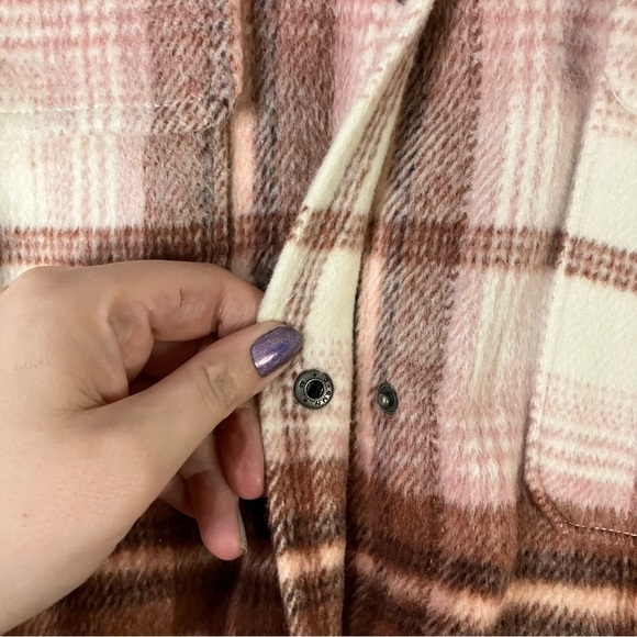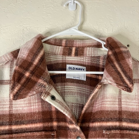 Old Navy Transitional Soft Brushed Plaid Utility Shacket in Pink Brown