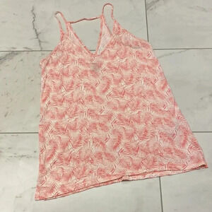 Old Navy Tropical Leaves Pattern Light Pink Hot Pink Racer Back Cutout Open Back Tank Top Sleeveless Size S