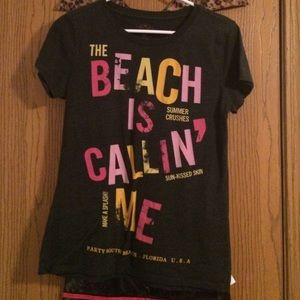 Worn a few times. Says "The Beach is Callin' Me" along with Summer Crushes, Sun-Kissed Skin, Make A Splash, and Party South Beach, Florida U.S.A