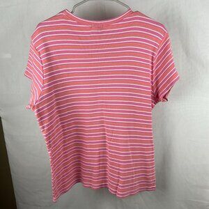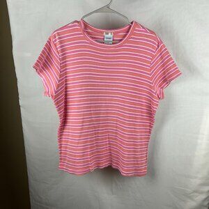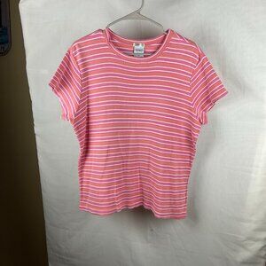 Style: Pink T-shirt with white and orange stripes