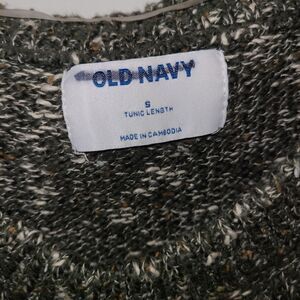 Old Navy Tunic Length cotton sweater in a size small. Color is a dark green mixed with grays. Excellent condition.