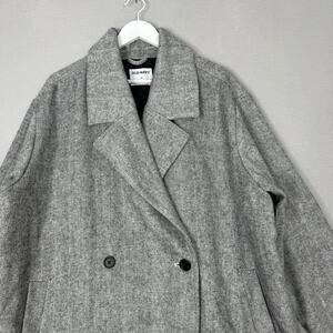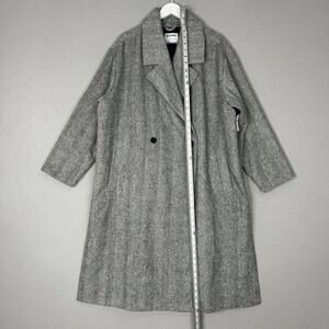 Old Navy Twill Double Breasted Coat Womens 2X Gray Long Slouchy Old Money Jacket