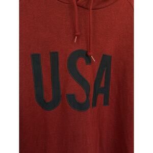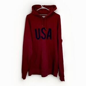 This Old Navy USA Heather Red Hooded Sweatshirt Pullover Hoodie with Kangaroo Pocket in size 2XL is a must-have for any woman's wardrobe. The hoodie is made of a comfortable blend of cotton and polyester, with a red color and USA-themed accents. It features a crew neck and long sleeves, making it perfect for travel, activewear, or casual occasions in any season. The pullover closure and hooded design add to its versatility and functionality. The hoodie also has a kangaroo pocket for added convenience. Get this stylish and comfortable hoodie today!