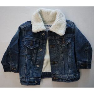 Old Navy Unisex Baby Sz 6-12M Medium Wash Sherpa-Lined Non-Stretch Jean Jacket